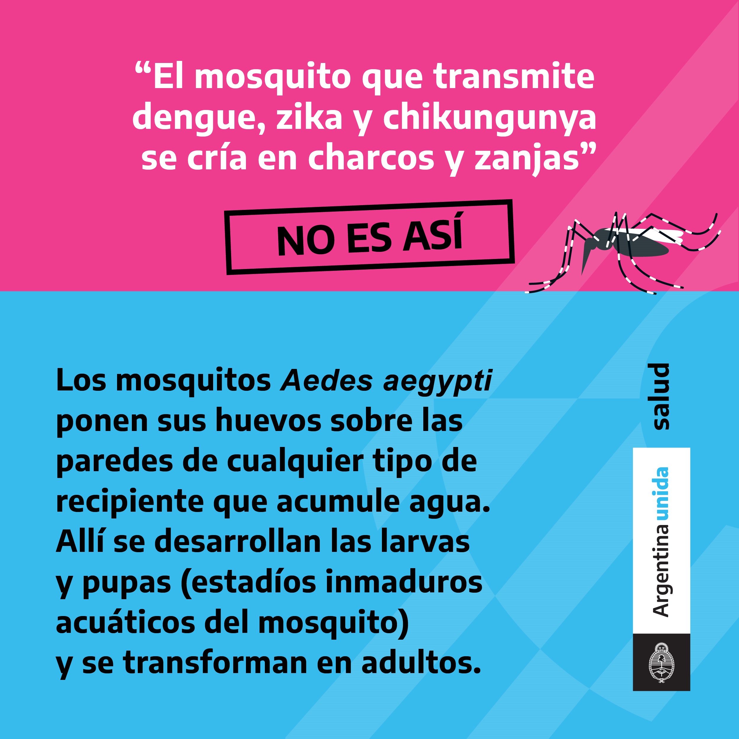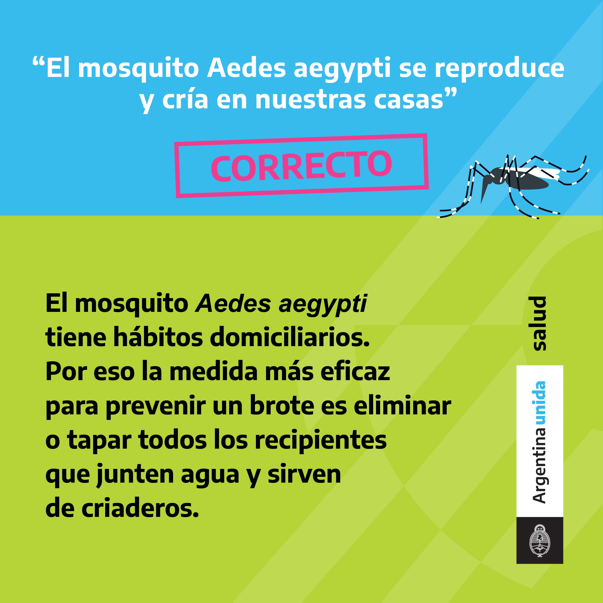 El mosquito que transmite el dengue se crÃa en recipientes que puedan acumular agua. Por eso es muy importante eliminar todos los posibles criaderos. Que el mosquito no se crÃe en tu casa.
