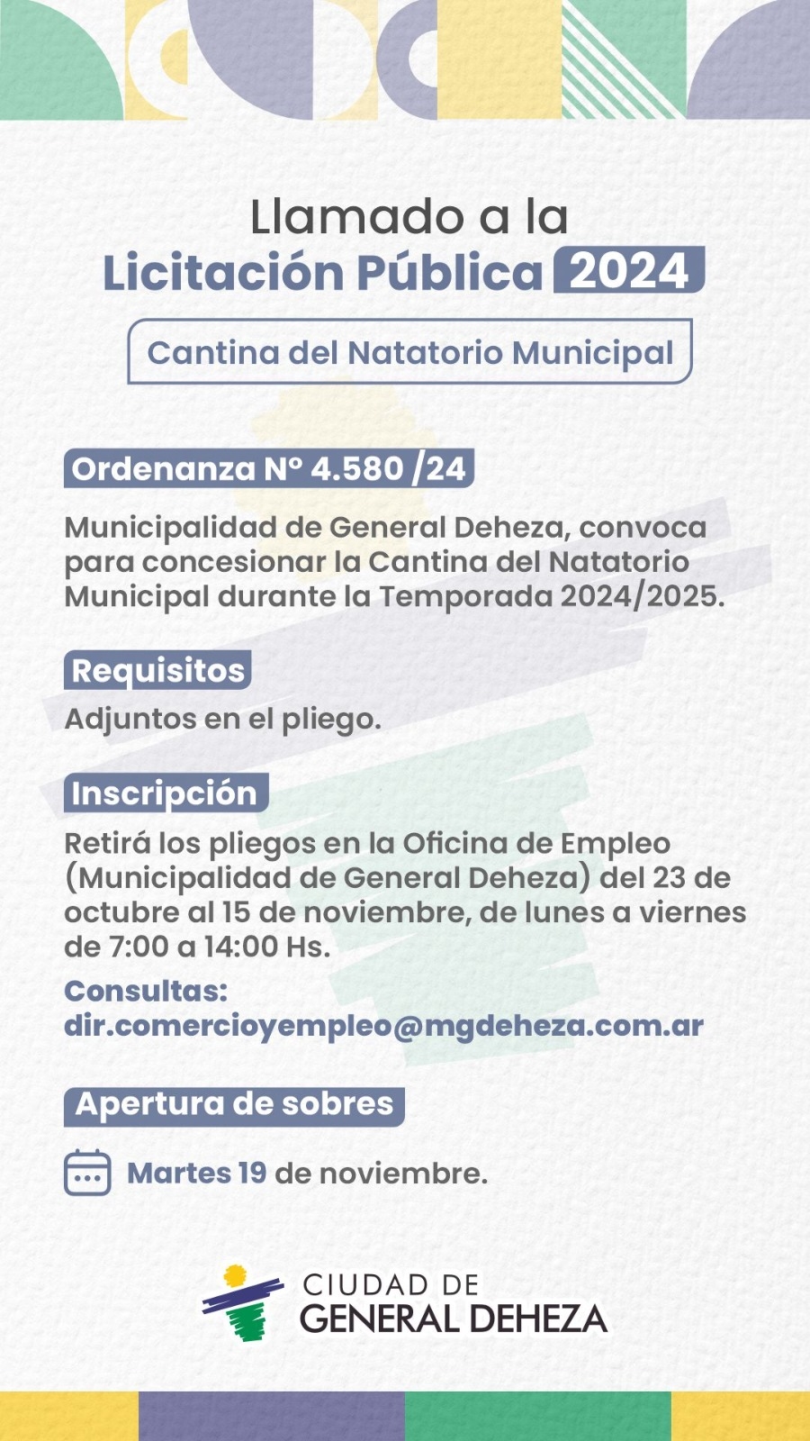 Interesados, retirar los pliegos a partir de hoy miércoles 23 de octubre hasta el viernes 15 de noviembre de 2024.