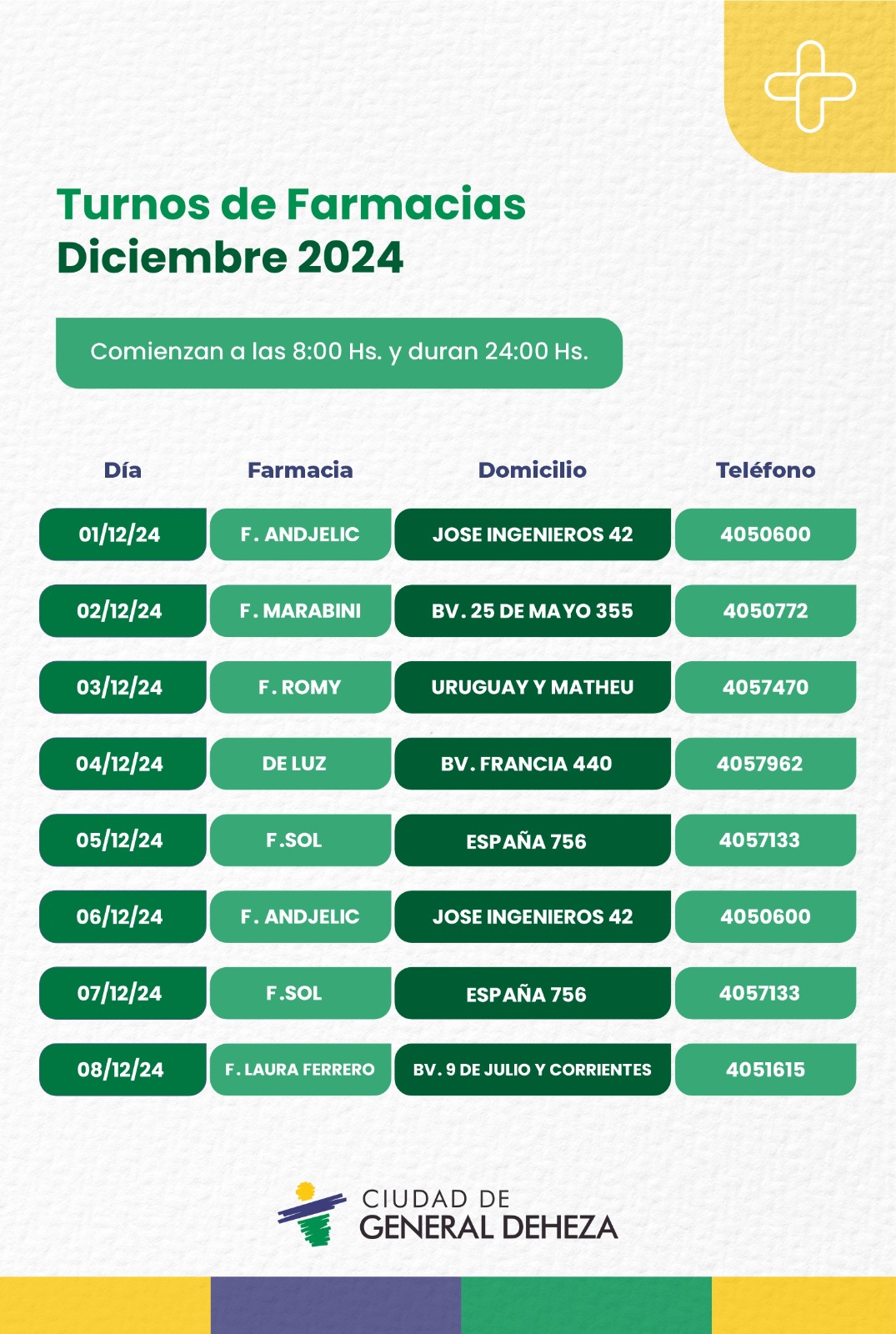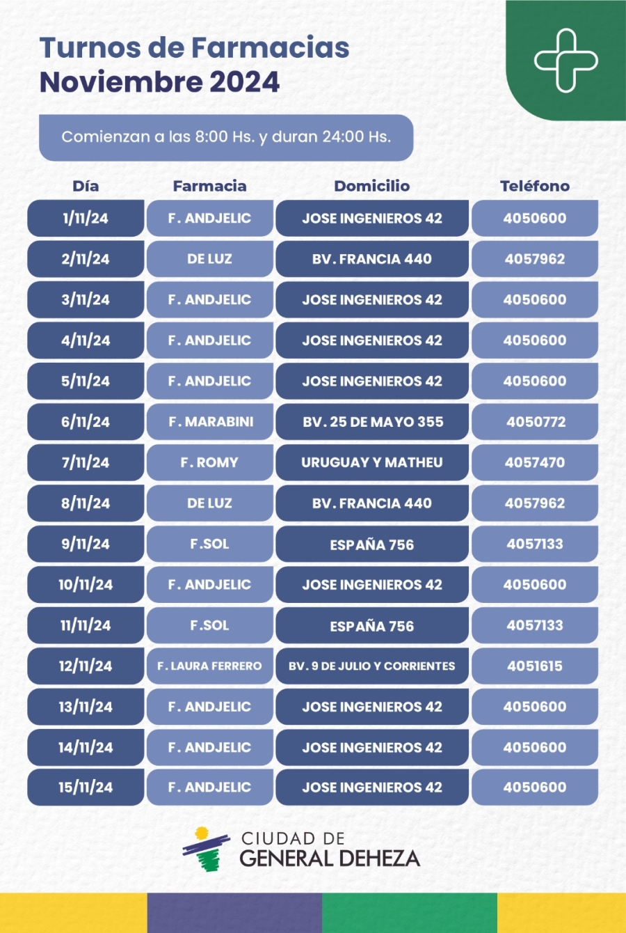 Consulte nuestra página web por las Farmacias de turno.