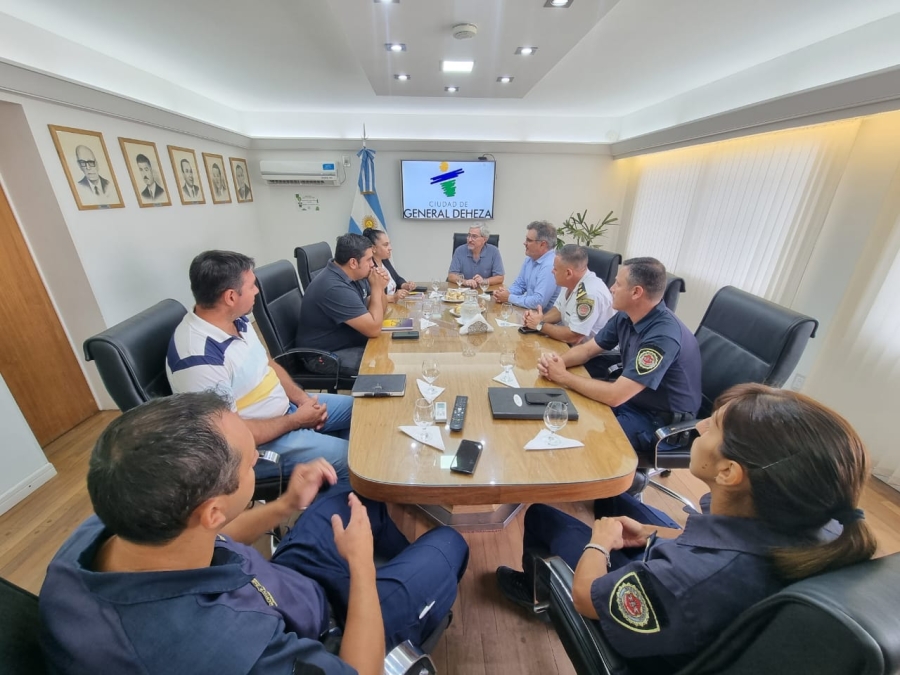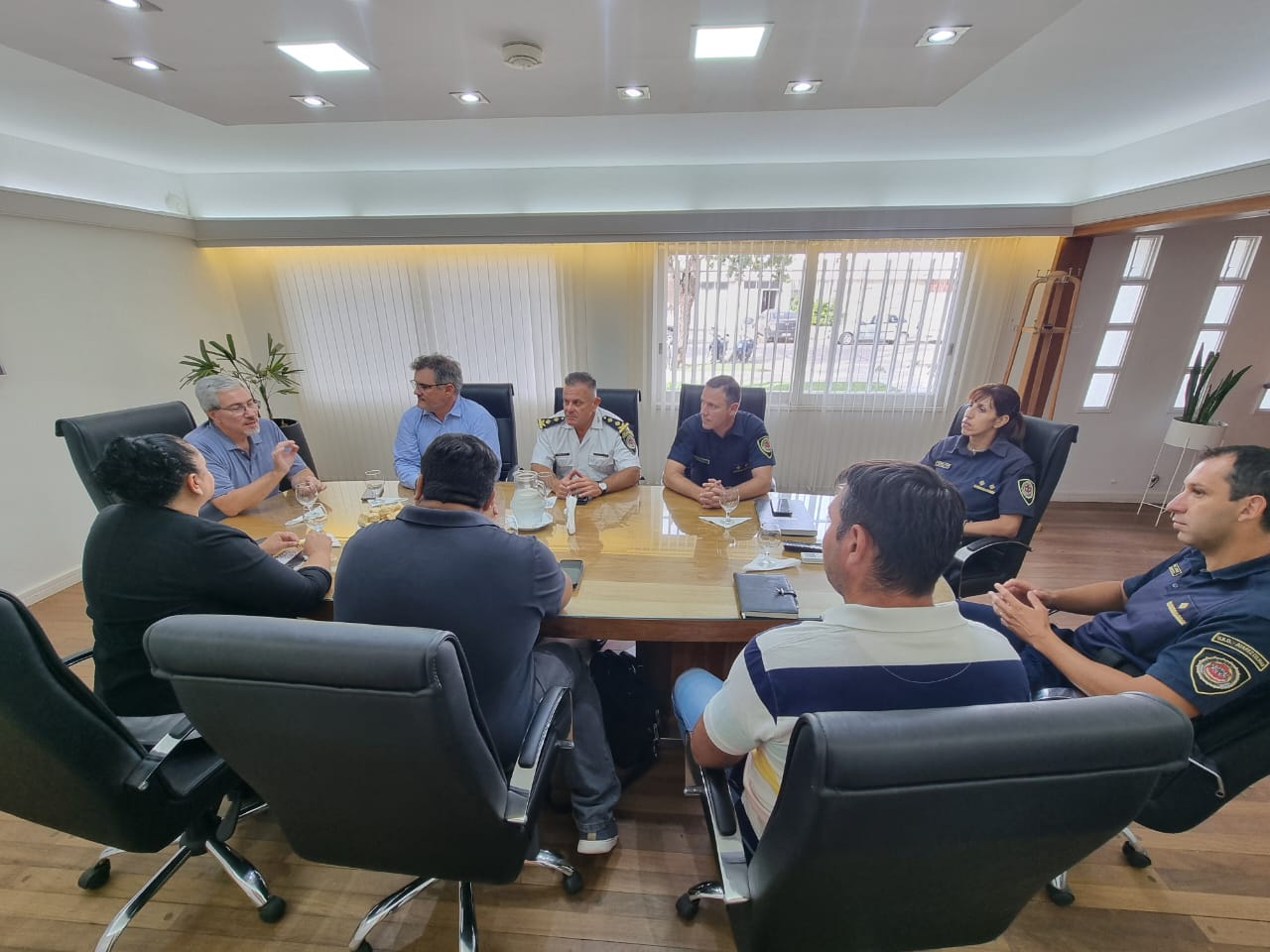 En la mañana de hoy, el Intendente Municipal, Mic. Eduardo Pizzi junto a la Secretaria de Protección Ciudadana, Sra. Claudia DÃaz, se reunieron con el Secretario de Seguridad de Carnerillo, General Cabrera, el Mayor del Departamento y el Comisario de nuestra Ciudad, Luciano Audero. Los temas abordados fueron sobre la jefatura de zona y las directivas del organismo provincial a implementar en el interior de la Córdoba.