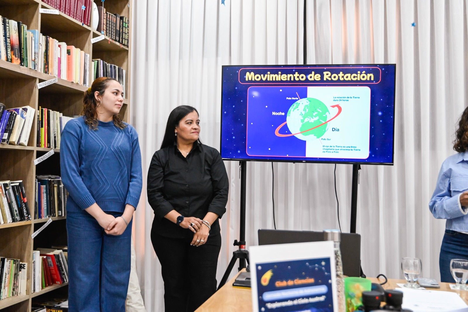 conformado por los profesores María Inés Buffa, María Soledad González, y Agustín Torres, junto a las estudiantes Lourdes Iperico,Victoria Leal Leiva, y Paulina Serrano brindaron una excelente capacitación que permitió a los presentes conocer estrellas, constelaciones y planetas.