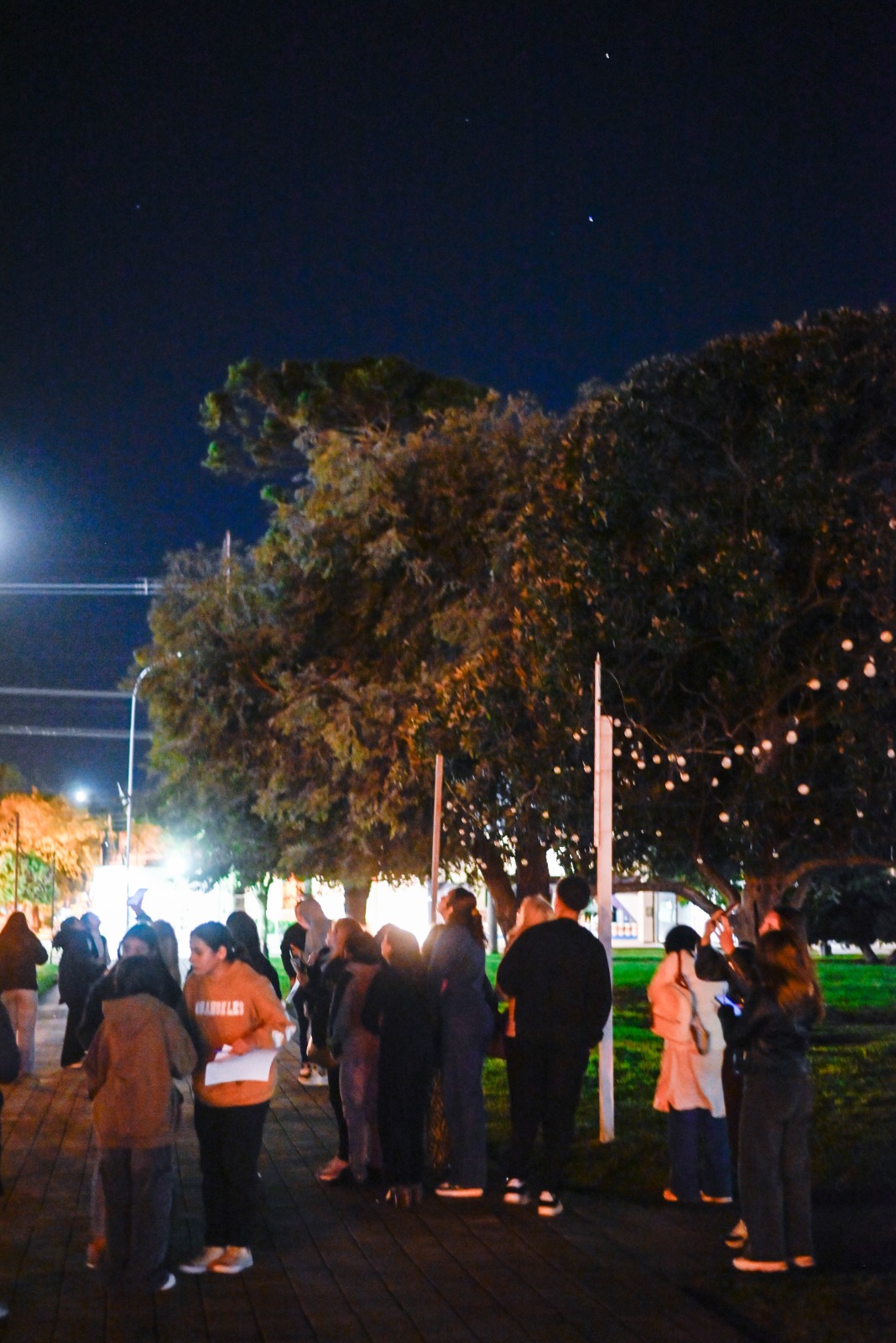 Fue posible aprender desde la teoría y la práctica, ya que se hicieron observaciones desde la plaza central, que por una hora quedó absolutamente a oscuras para favorecer la actividad.