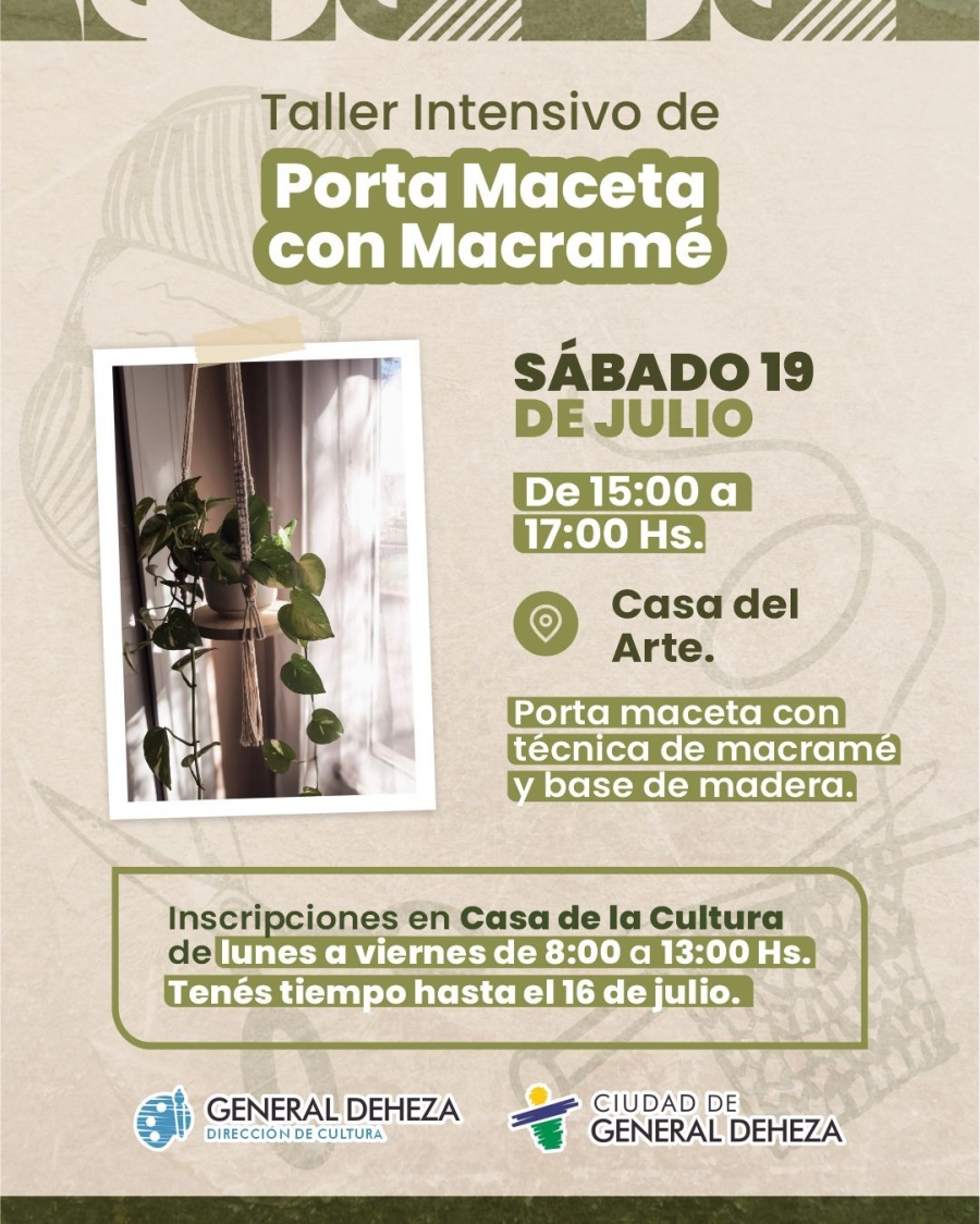 Acercate a Casa del Arte, sobre Bv. 25 de Mayo, el día sábado durante el dictado del curso o consultá, llamando 358 5 146331