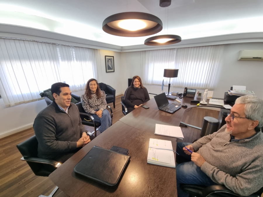 El Intendente Municipal, Mic. Eduardo Pizzi, junto a la Secretaria General de Gobierno, y la Secretaria de Finanzas; recibieron al nuevo Gerente de Banco Nación.