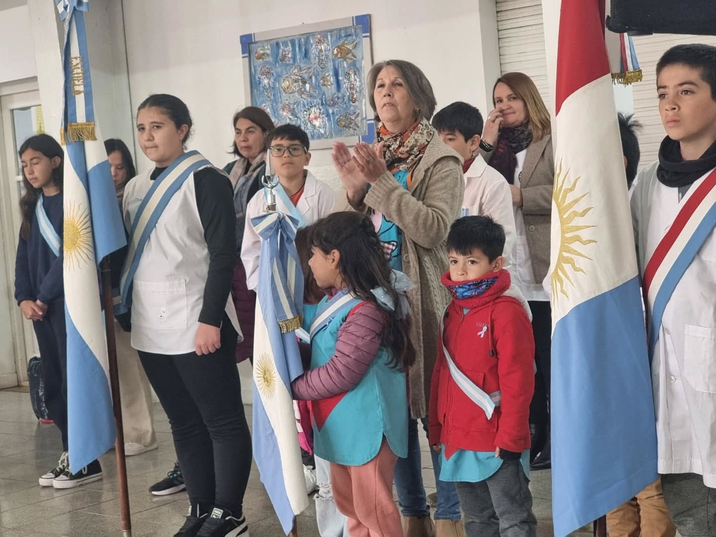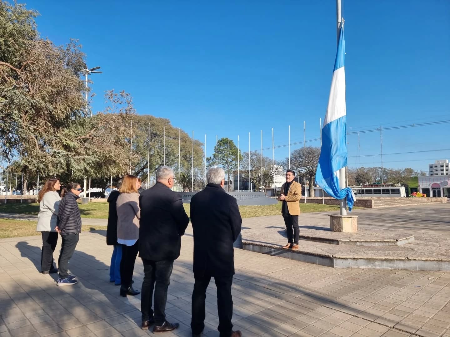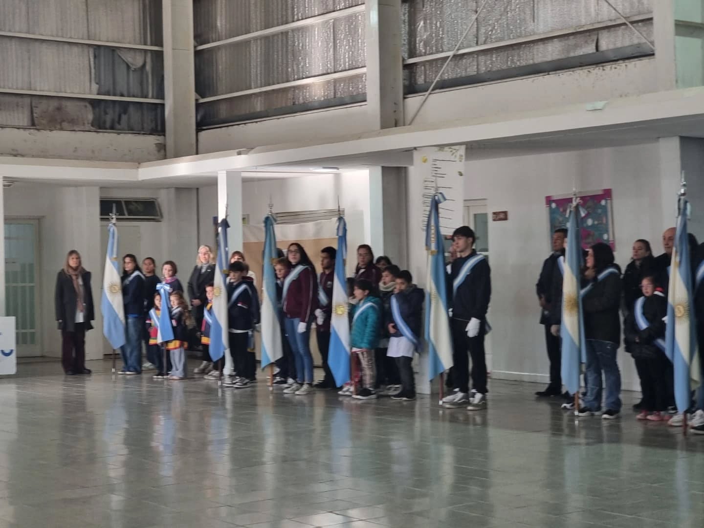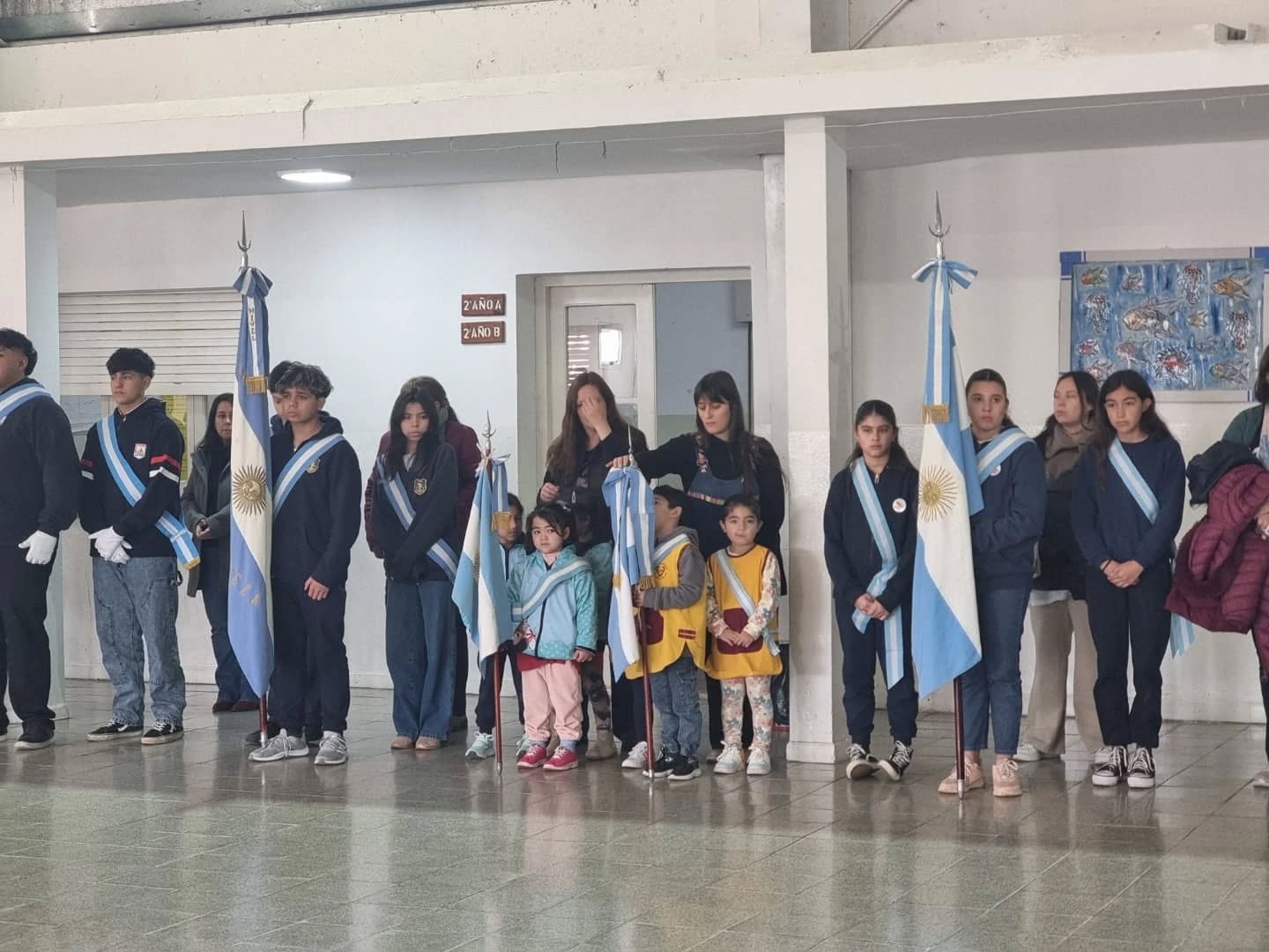 En la Escuela Gral. San Martín se celebró el Acto protocolar al que asistieron el Intendente Municipal, Mic. Eduardo Pizzi, la Secretaria General de Gobierno, Vanina Contreras y demás autoridades locales.