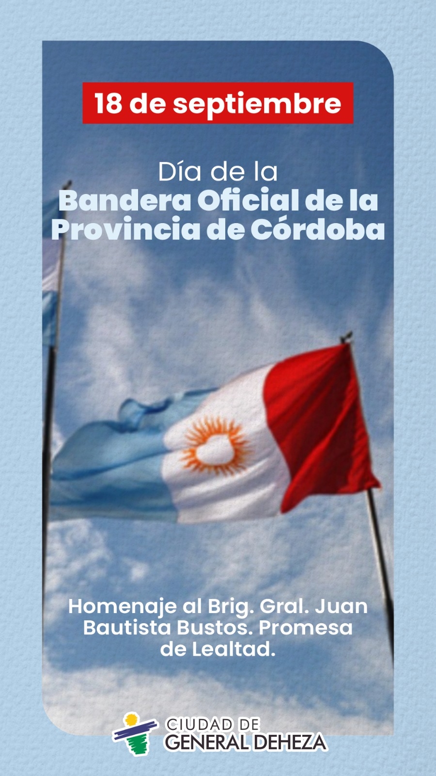 La fecha celebratoria fue sancionada por unanimidad por la Legislatura provincial, que instituyó al 18 de septiembre como el “Día de la Bandera de la Provincia de Córdoba”.