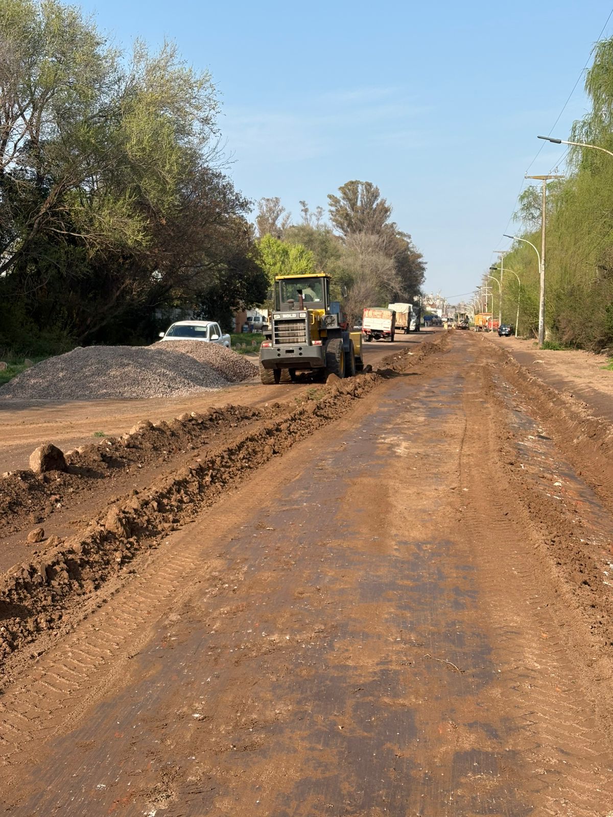 Personal del Área de Servicios Públicos, realiza tareas de mantenimiento y arreglo de calle Islas Malvinas. En el mismo sector se trabaja en la creación de un canal de desagüe para evitar acumulación de agua sobre la traza.