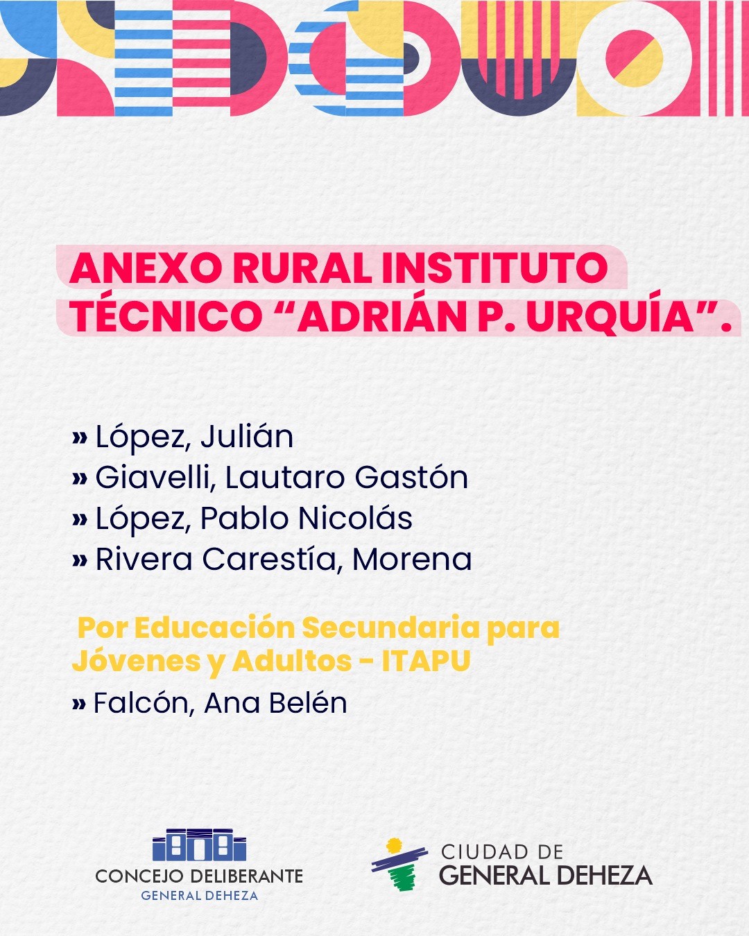 #HonorableConcejoDeliberante #DirecciónDeEducaciónYCiencia #MunicipalidadDeGeneralDeheza