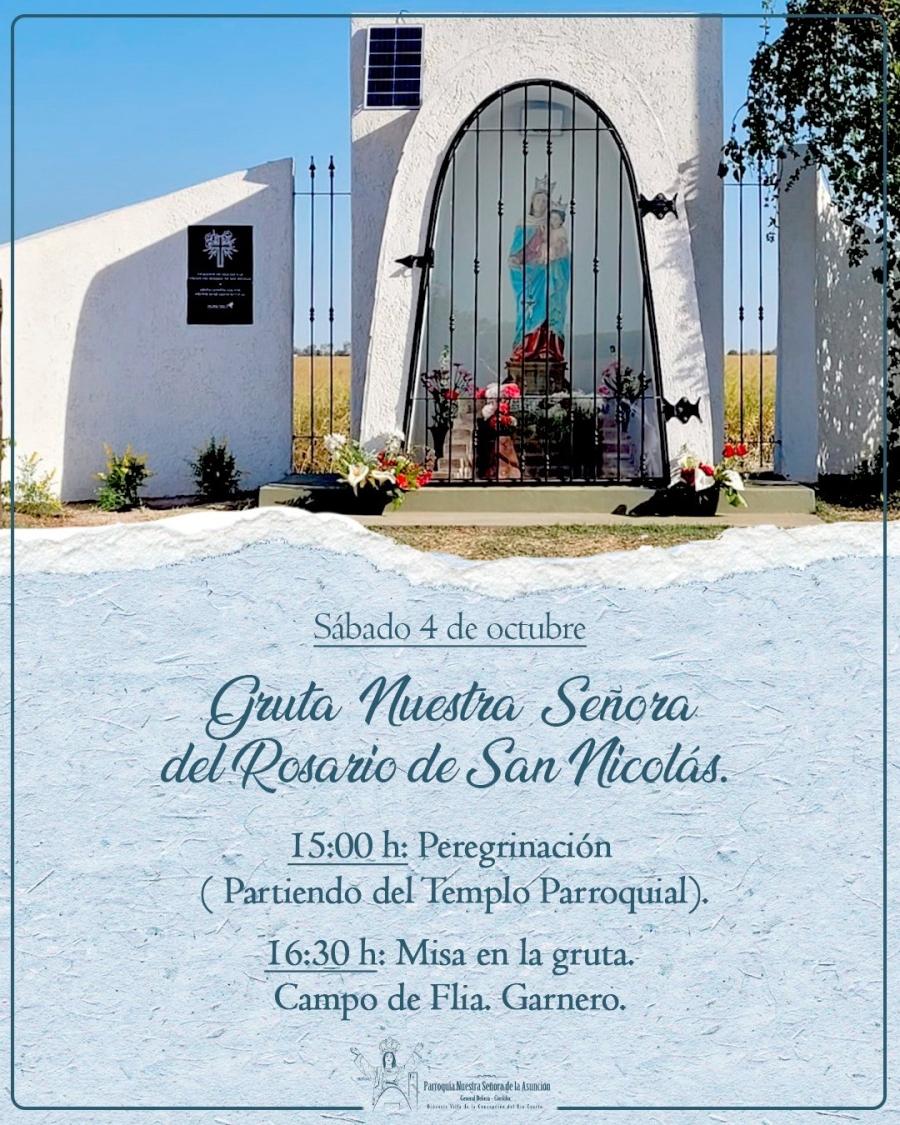 Los invitamos a peregrinar a la Gruta de la Virgen del Rosario de San Nicolás en el campo de la familia Garnero.