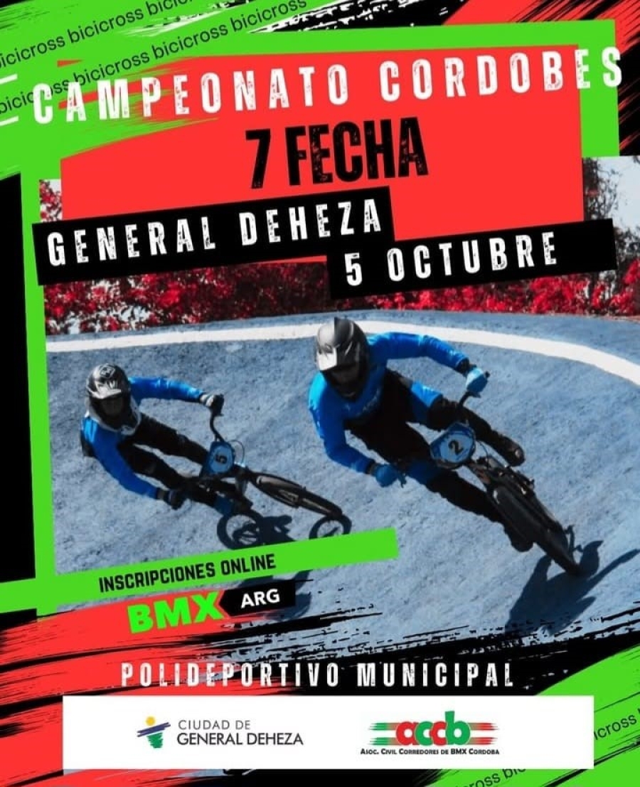 Este sábado 4 y domingo 5 de octubre de 2025, en las instalaciones del polideportivo municipal Roberto D. UrquÃa, se desarrollará la 7° fecha del campeonato provincial de BMX, contando con la participación de deportistas locales, Alta Gracia, Villa Dolores, RÃo Cuarto, Córdoba Capital, Almafuerte, La Rioja, Santiago del Estero, Vicente López (Bs. As), entre otros espacios del paÃs.