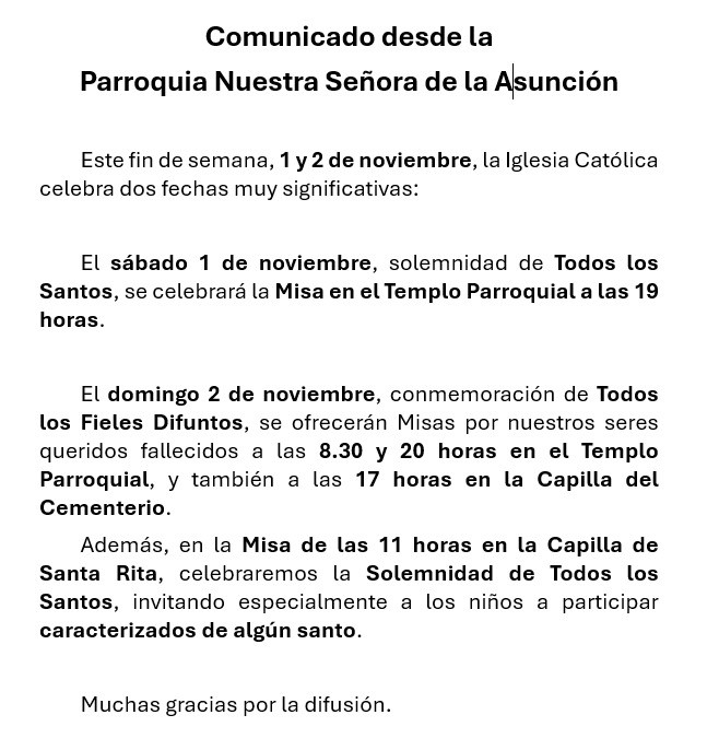 PARROQUIA NUESTRA SRA. DE LA ASUNCIÓN INFORMA