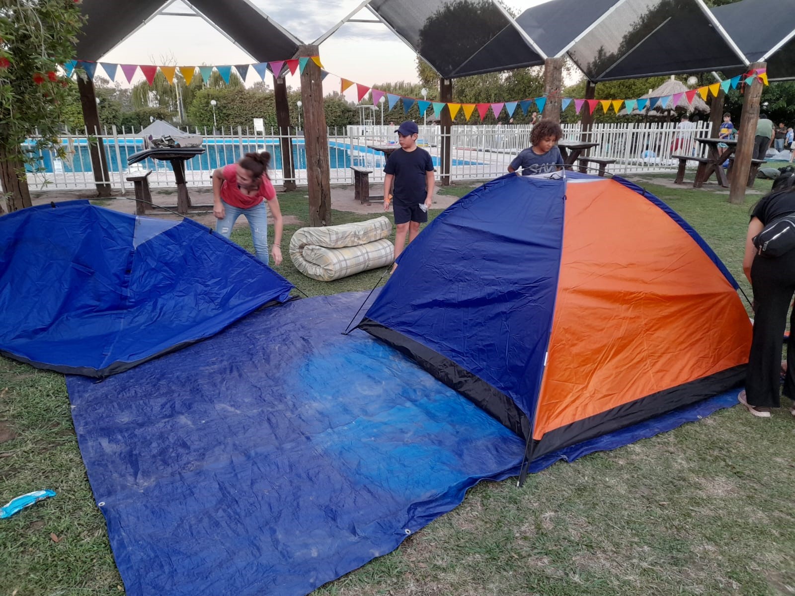 Alrededor de 160 chicos de nuestra Escuela de Verano, se reunieron ayer por la tarde para piletear y posteriormente comenzar con el armado de carpas para pasar una Noche de Campamento. Este verano lo vivieron a pleno y con mucha
