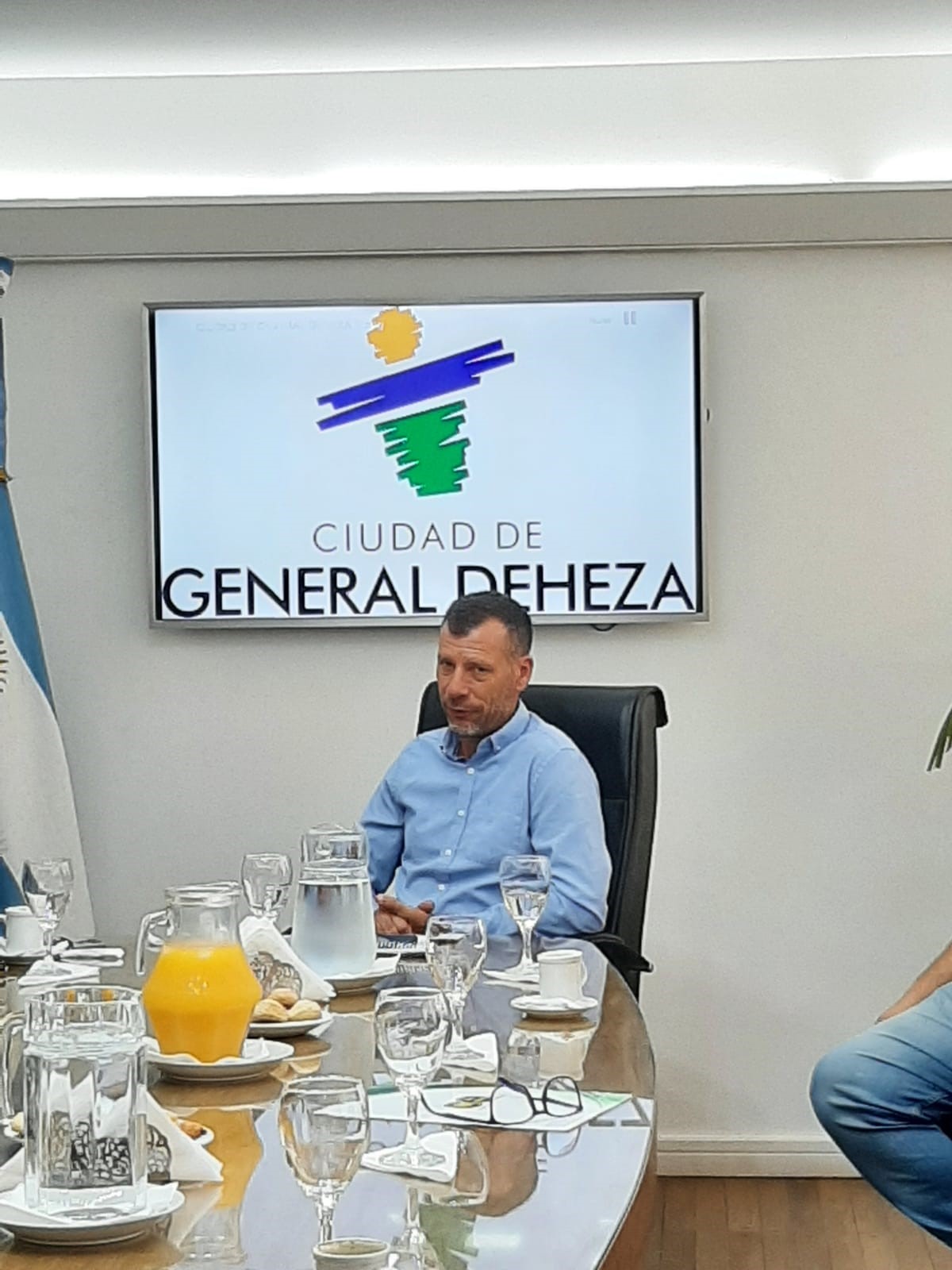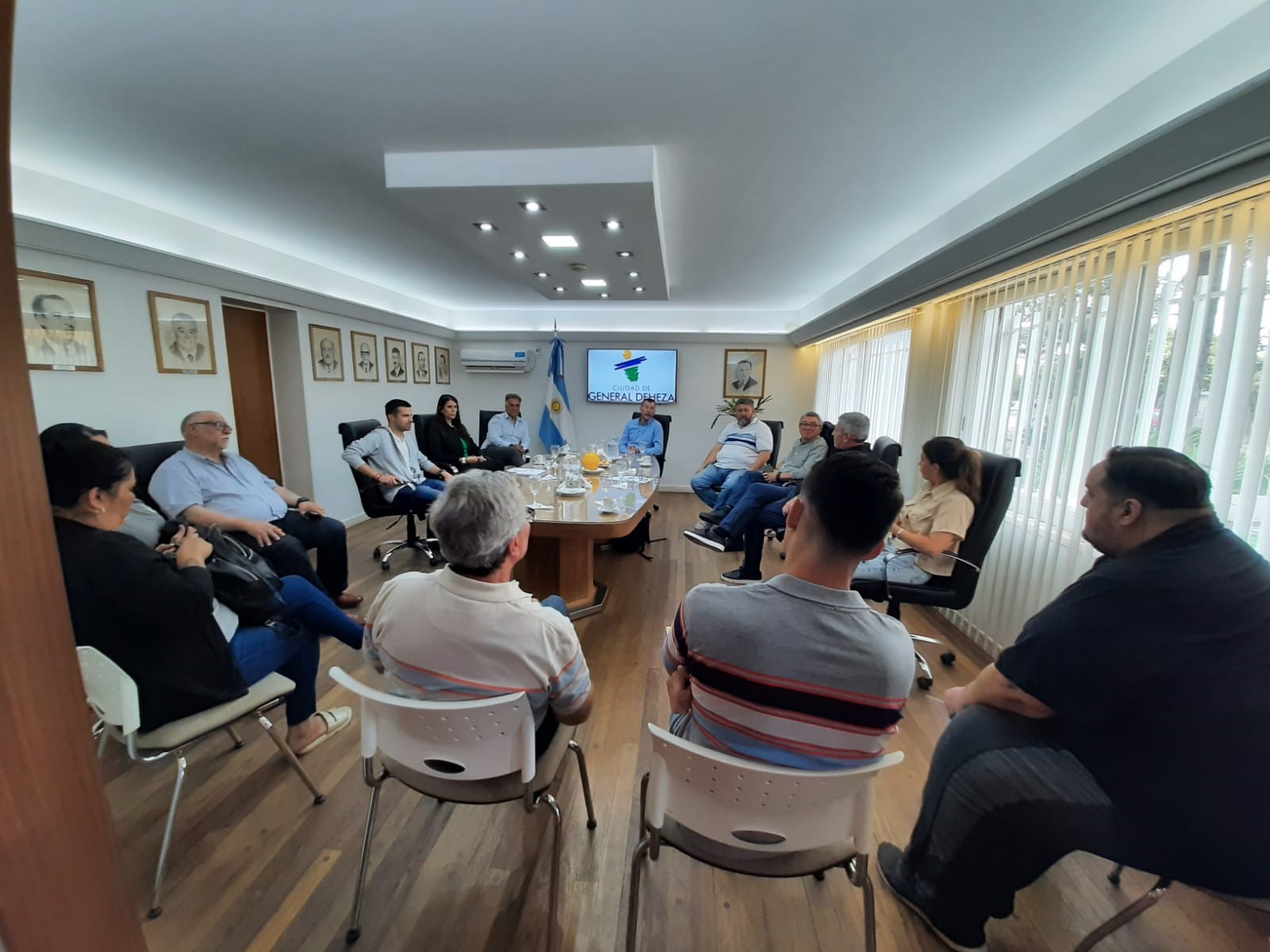 Con una convocatoria muy importante, el Intendente Eduardo Pizzi, recibió en la mañana de hoy al Sr. Gustavo Massotti del Ministerio de Cooperativas y Mutuales del Gobierno de la Provincia; formaron parte de la reunión el Sr. Ariel Moreyra, Presidente de la Comunidad Regional Juárez Celman; representantes de Mutual de las Comunidades, Cooperativa de Trabajo "Nuestra Sra. de la Asunción" y Cooperativa Eléctrica General Deheza.