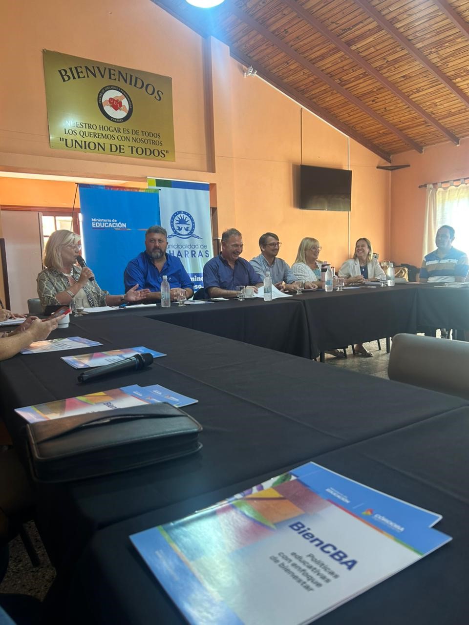 Intendente de Charras, Emiliano Rattazzi; con la presencia del Ministro de Educación Horacio Ferreyra, la Dra. Gabriela Brandan, Directora General de Planeamiento, Evaluación y Prospectiva