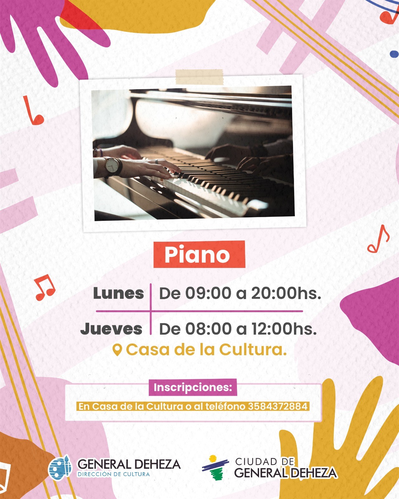 Inscripciones: de lunes a viernes de 8 a 13 horas o llamando al 4057529