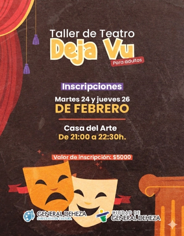 ¡Volvemos a escena! Se abren las inscripciones para el Taller de Teatro “Deja Vu”. Una propuesta para adultos que quieran expresarse, divertirse y animarse a vivir el teatro desde adentro. Martes 24 y jueves 26 de febrero - Casa del Arte (Bv. 25 de Mayo) - De 21 a…