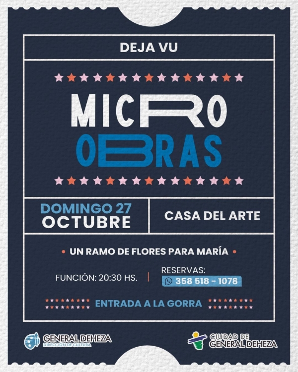 Los esperamos a pasar un momento que nos mantiene expectantes y nos traslada a historias maravillosas o no tanto. Por eso, descubrí "Un ramo de flores para María", este domingo 27 de octubre en Casa del Arte a las 20.30, sobre Bv. 25 de Mayo. Colaboración a la gorra Reservas…