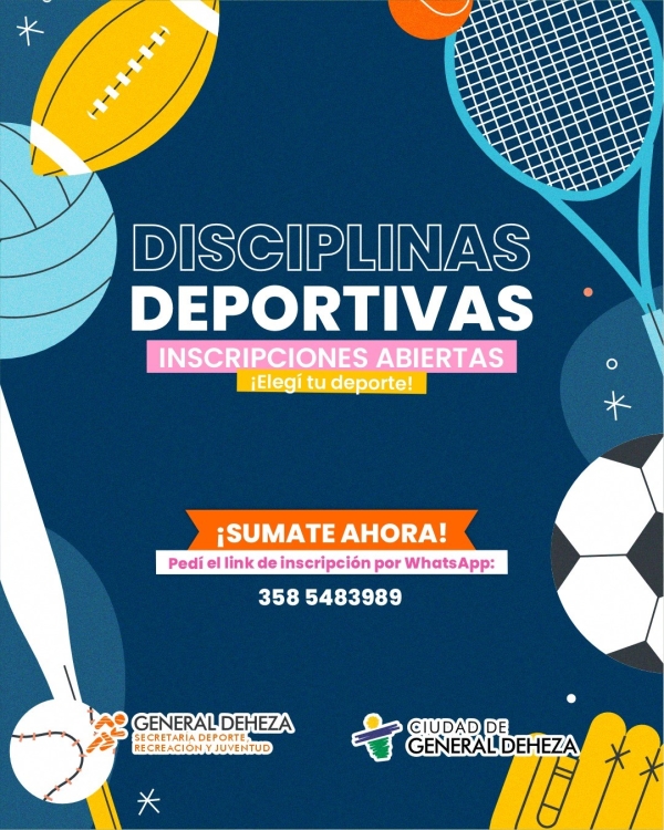Este año ya estamos con ganas de comenzar a movernos en las distintas disciplinas deportivas que te ofrecemos. ¡Inscribite mente sana, cuerpo sano! ¡Movete y cambiá tu día, la Muni te espera! #SecretaríaDeDeportesRecreaciónYJuventud #MunicipalidadDeGeneralDeheza #ActividadFísicaTodoElAño