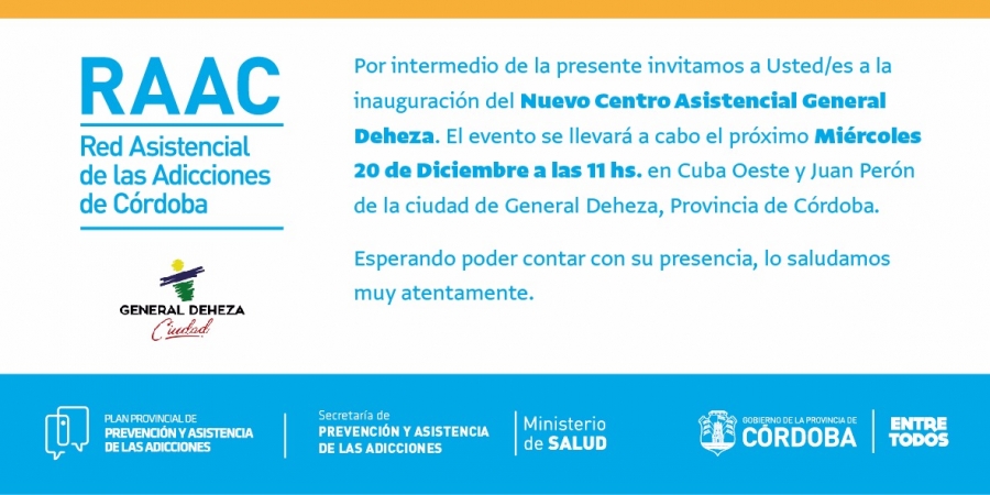 La Red Asistencial de las Adicciones de Córdoba (RAAC), lleva adelante intervenciones basadas en la evidencia cientÃfica que resultan efectivas, eficientes y eficaces. Además genera una serie de beneficios para los distintos municipios y en consecuencia, también para los usuarios y sus familiares. Contar con nuestro centro, implica: asistencia, capacitación, asesoramiento para generar grupos comunitarios, campañas preventivas; admisión y derivación a servicios de mayor complejidad.
