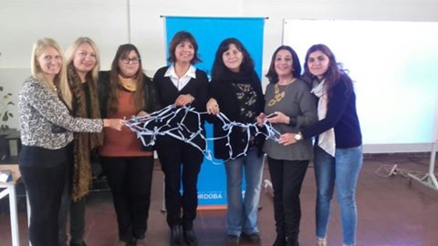 En la imagen de izquierda a derecha, la Dra. Eugenia Giménez, por Intersectorialidad de la SeNAF del Gobierno de la Provincia de Córdoba; la Sra. Elsa Monte, Directora de la Escuela Gral. San MartÃn, como referente de las escuelas primarias locales; la Lic. Florencia Bossi, integrante de nuestro Gabinete Interdisciplinario; la Asistente Social, Andrea Roldán; la Prof. Soraya Cañas, integrante del Gabinete Municipal; Ada Alba Navarro, Responsable de Intersectorialidad de la Provincia y Danisa Rosso, Psicóloga del Gabinete local.